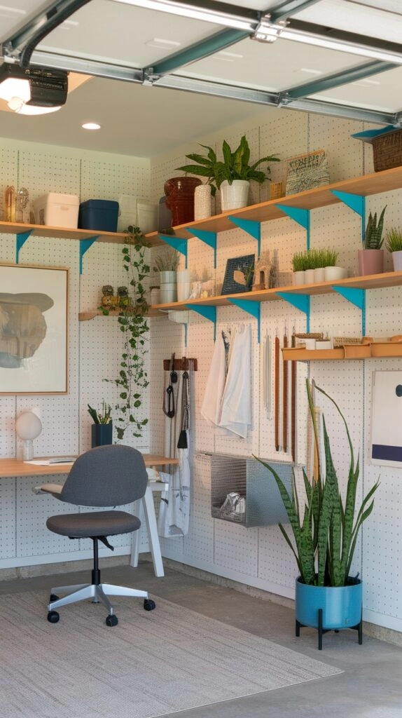 Making the most of your wall space can really elevate your garage office. Use shelves to display plants or books, while pegboards help keep tools and supplies organized and accessible. This way, everything has its place and your workspace feels inviting and tidy!