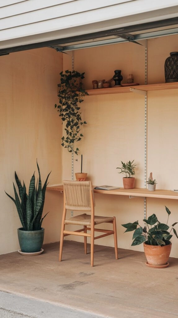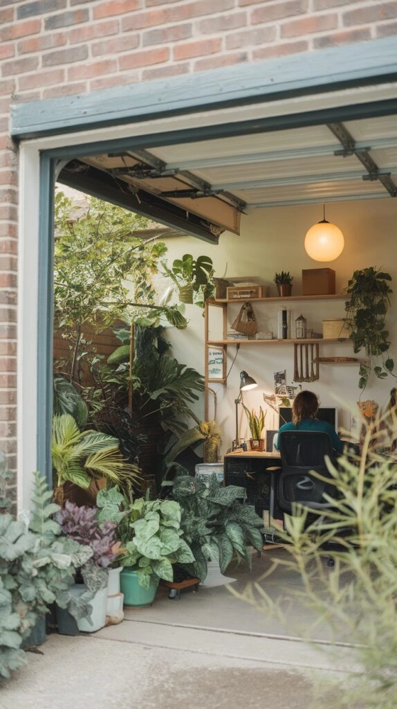 Turning your garage into a cozy office can be a breeze. Open the garage door for fresh air and light, while plants add a touch of nature. This setup not only boosts creativity but also makes working from home feel more refreshing.