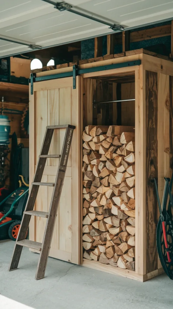 Storing firewood doesn’t have to be a hassle. A simple wall-mounted rack can keep your wood organized and easy to access. Plus, it adds a rustic touch to your garage!