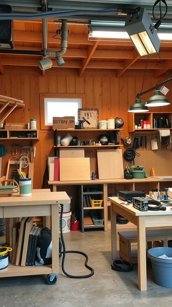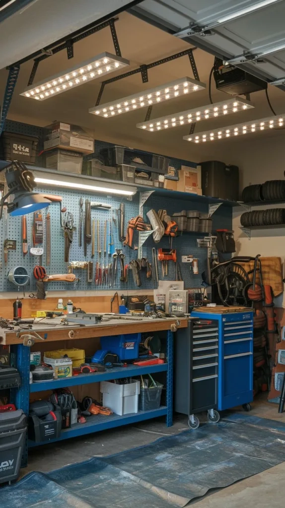 Good lighting can change everything in a garage workshop. Consider installing bright LED strips to brighten up your workspace and make details pop. A well-lit area helps you focus and enjoy your DIY projects even more!