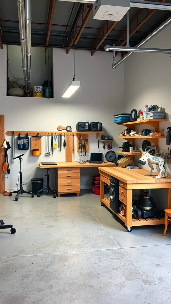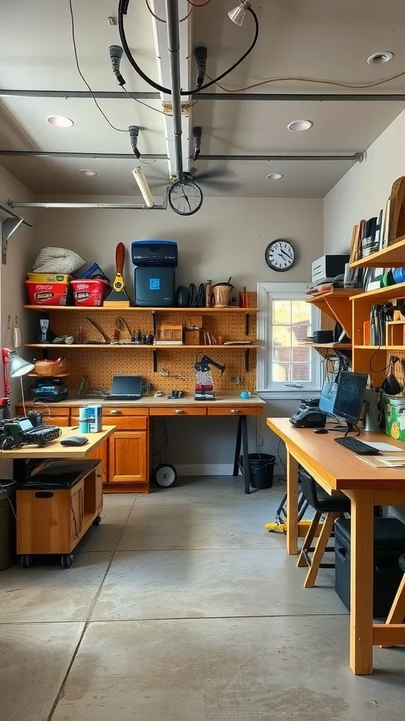 Creating a portable workstation can make all the difference in a small garage. A simple rolling desk with storage can provide both functionality and mobility. This setup allows you to rearrange your space easily for different projects, keeping your DIY aspirations alive!