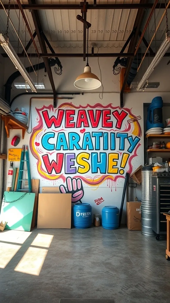 Wall art can spark creativity in your garage workshop. Bright colors and bold messages can energize your space and ignite your imagination. Don’t hesitate to add your personal touch to make it truly yours!