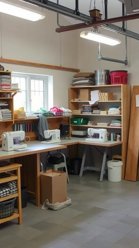 A dedicated sewing area can turn your garage into a creative haven. Set up sewing machines along a spacious table and organize fabrics on shelves for easy access. It’s the perfect place to let your imagination run wild with fabric projects!