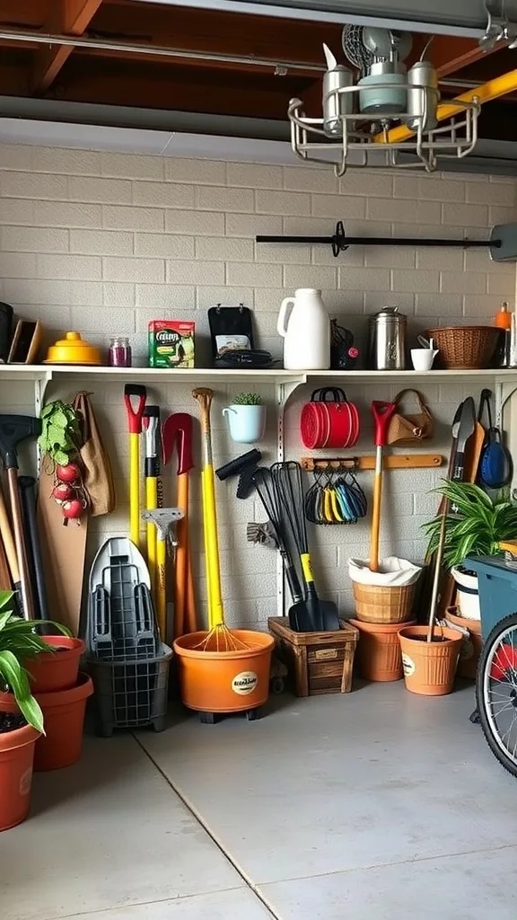 Your garage can be a great spot to store your gardening tools while keeping things organized. Use shelves and hooks to hang tools, making them easy to reach and see. Adding some potted plants can even brighten up the space and inspire your next gardening project!