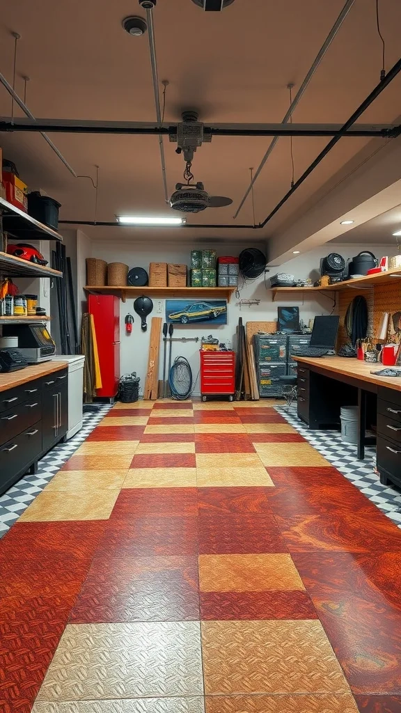 Choosing the right floor can really amp up your garage workshop. Consider using colorful tiles or vinyl, which not only look great but are also easy to clean. A unique flooring design can inspire creativity and make your DIY projects even more enjoyable!